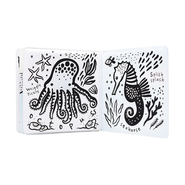 Badboekje Color Me: Who’s in the Ocean? is een prachtig geïllustreerd badboek dat op magische wijze van kleur verandert wanneer je het in water onderdompelt of nat maakt met je vingers of een borstel. Het badboekje met zwart-wit illustraties introduceert kinderen aan een reeks zeedieren waaronder een vis, een octopus en een zeester. Het is zacht en licht van gewicht. Elk zwart-wit wezen verandert in de handen van een kind en garandeert uren badplezier.