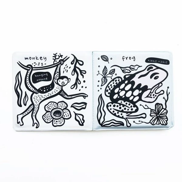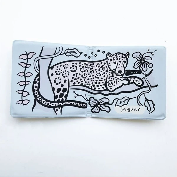 Badboekje Color Me: Who’s in the Rainforest? is een prachtig geïllustreerd badboek dat op magische wijze van kleur verandert wanneer je het in water onderdompelt of nat maakt met je vingers of een borstel. Het badboekje met zwart-wit illustraties introduceert kinderen aan een reeks regenwouddieren met een aap, een toekan en een jaguar. Het is zacht en licht van gewicht. Elk zwart-wit wezen verandert in de handen van een kind en garandeert uren badplezier.