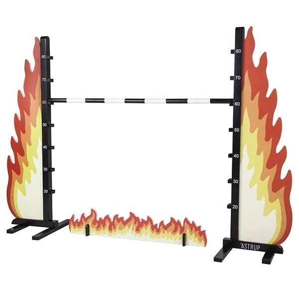 Met deze hindernis voor stokpaardjes vuur beleven kinderen uren fantasierijk en energievol spel. Wie springt het hoogste met zijn of haar stokpaardje door de zee van vuur? De hindernis is in te stellen op verschillende hoogtes van 20 cm tot 80 cm en is zo ontworpen dat de stok makkelijk uit de houder valt wanneer deze aangeraakt wordt. Dit om vallen te vermijden bij het spelen.
