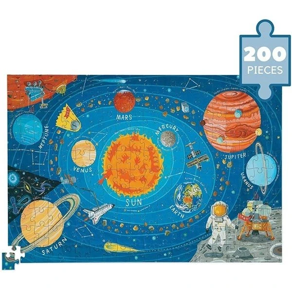 Met deze puzzel van 200 stukjes puzzel je alle planeten in de ruimte bij elkaar. Deze prachtige puzzel is een mooi geïllustreerd heeleal die de verschillende planeten en hun namen toont. Weet jij waar de aarde ligt? Of Mars? Vervolledig de puzzel en ga op zoek naar al deze planeten. De puzzel is verpakt in een kartonnen koker samen met een poster die kan dienen als voorbeeld of ter decoratie aan je muur in de kamer.