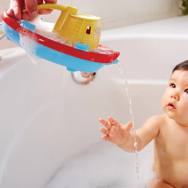Met deze sleepboot rood-geel van Green Toys verken je het water in de badkuip en het zwembad. Deze speelgoedboot bestuur je zelf, blijft echt drijven en heeft een brede tuit om water op te scheppen en te gieten. Gemaakt in de VS van 100% gerecycleerd plastic. Super leuk speelgoed voor in bad, het zwembad, aan zee, in de tuin of om zo mee te spelen.