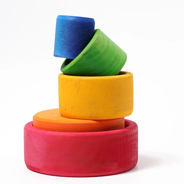 Deze set van 5 kommen met rood als grootste kom is veelzijdig speelgoed voor kinderen waarmee ze kunnen stapelen en sorteren op grootte en kleur. Met de kommen kan je bouwen, ze gebruiken als kookpot of bord, schatten verzamelen en nog veel meer… laat de fantasie de vrije loop.