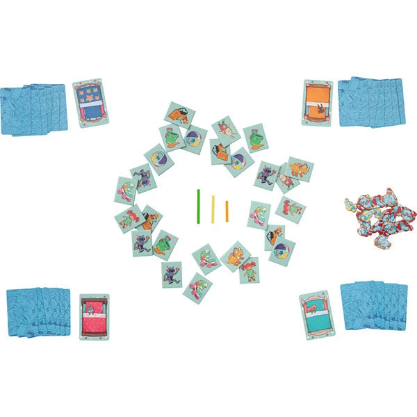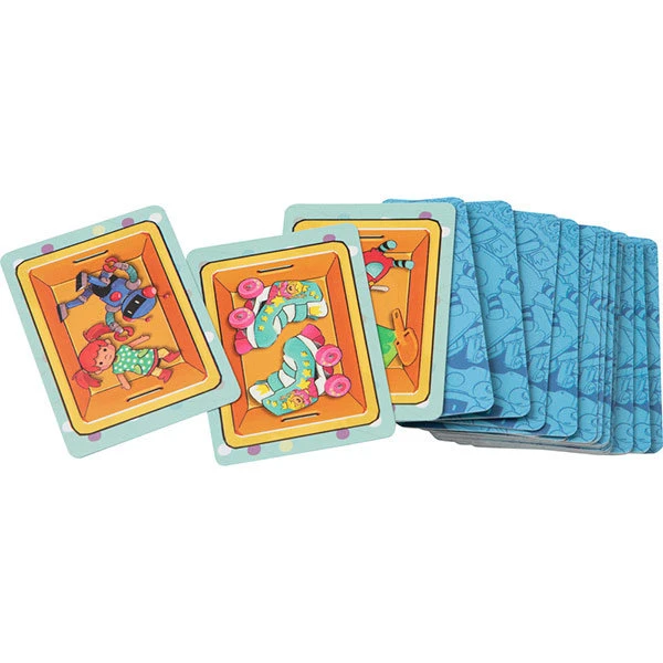 - Inhoud: 36 dozen en bedden (kaartjes), 36 speelgoedkaartjes, 15 chaoskaartjes in 3 verschillende kleuren en vormen, 3 houten staafjes in verschillende kleuren en lengtes, 1 handleiding in Nederlands, Engels, Duits, Spaans, Italiaans en Frans