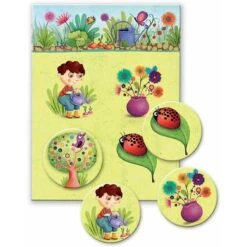 - Inhoud: 1 doos, 4 achtergrondbeelden, 4 gestanste kaarten met 77 magnetische plaatjes.