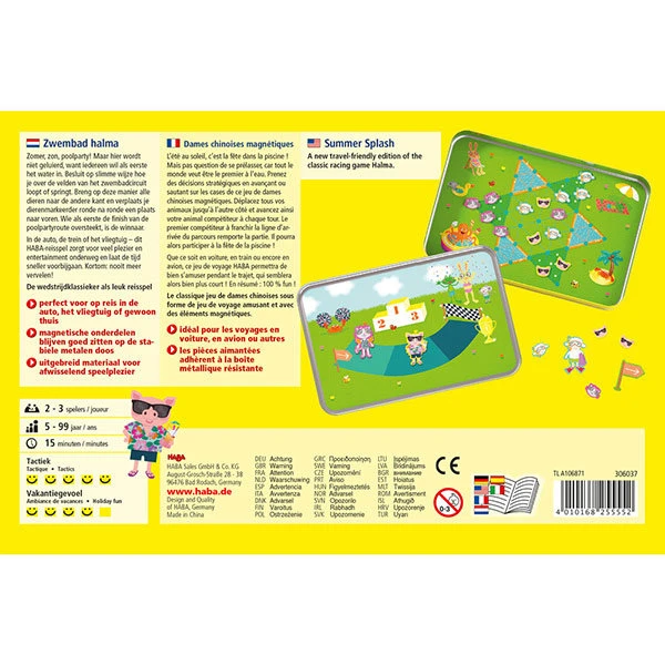 Kenmerken van dit Haba reisspel Zwembad halma: