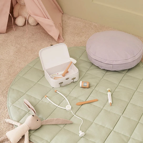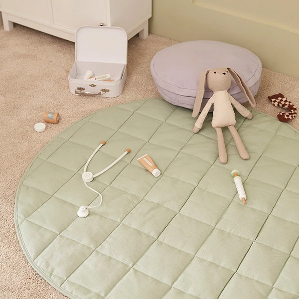 Deze light green gewatteerde speelmat is ideaal om heerlijk zacht op te spelen. De speelmat is ontworpen om in een tipi tent te passen of gewoon als speelmat te gebruiken of onder een houten babygym. De speelmat is opvouwbaar en gemakkelijk mee te nemen. Speeltijd hoeft dan ook nooit te stoppen, ben je thuis of onderweg spelen kan altijd met deze leuke speelmat.