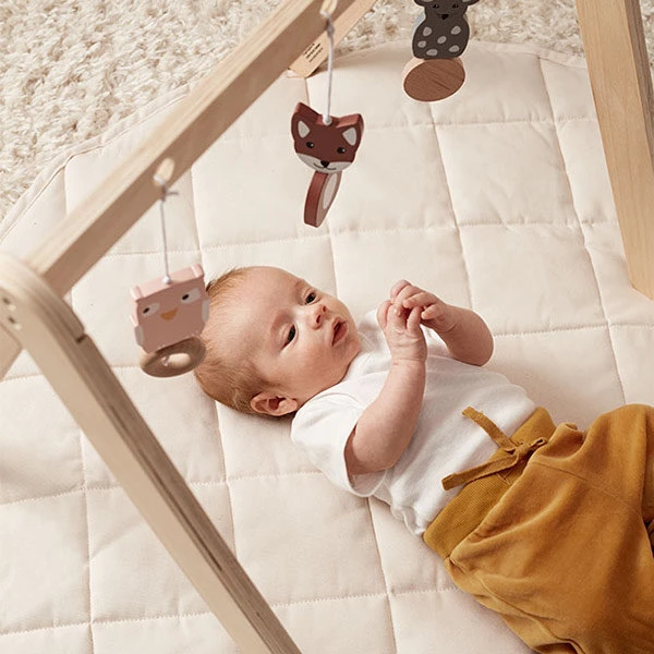 Deze off white gewatteerde speelmat is ideaal om heerlijk zacht op te spelen. De speelmat is ontworpen om in een tipi tent te passen of gewoon als speelmat te gebruiken of onder een houten babygym. De speelmat is opvouwbaar en gemakkelijk mee te nemen. Speeltijd hoeft dan ook nooit te stoppen, ben je thuis of onderweg spelen kan altijd met deze leuke speelmat.