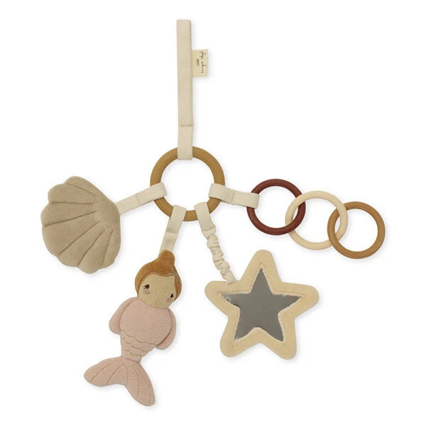 Deze activiteitenring Mermaid is het ideale babyspeelgoed voor je baby om mee te spelen. De activiteitenring heeft verschillend zachte figuren met spiegel en rammelaar, zoals een zeemeermin, een schelp en een ster, 3 siliconen bijtringen en een handige velcrosluiting waarmee je het babyspeelgoed eenvoudig vastmaakt aan de buggy of de maxicosi. Allemaal om de zintuigen van je baby te stimuleren.