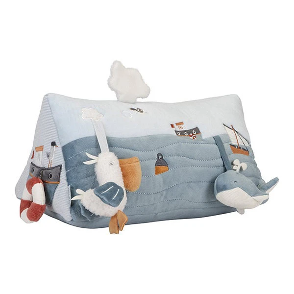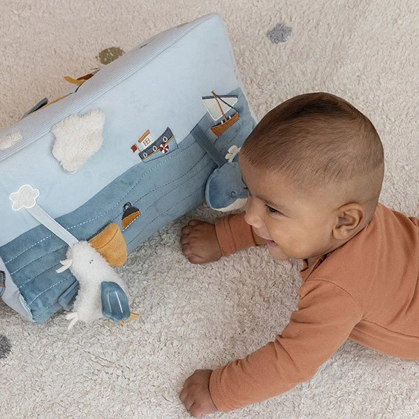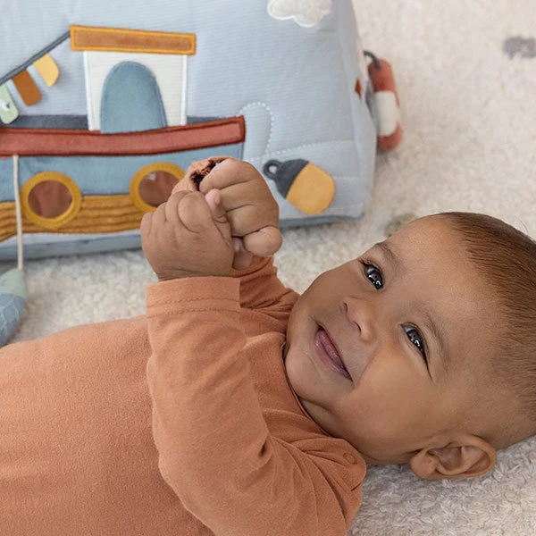 Deze veelzijdige activiteitendriehoek in Sailors Bay thema neemt kleine kinderen mee op avontuur terwijl ze op hun buik liggen. De boot is weer terug in de haven! Onderweg valt er veel te ontdekken. Van knisperende vissen en spiegeltjes tot een rammelende walvis en een piepende pelikaan. Het product heeft speelse functies en leuke texturen die de zintuigen en verbeeldingskracht van je baby prikkelen.