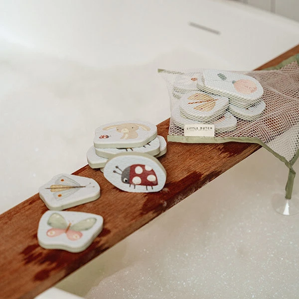 Met dit badspeelgoed bestaande uit verschillende foam figuren in het Flowers & Butterflies thema van Little Dutch wordt in bad gaan super leuk! Verander het bad in een avontuur door de de foam figuren nat te maken en tegen de badwand of badkamertegels te kleven. Verpakt in een handig opbergzakje met zuignappen.