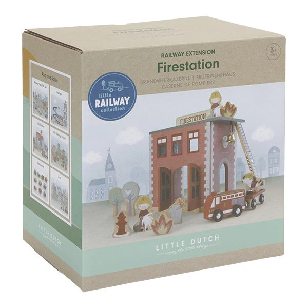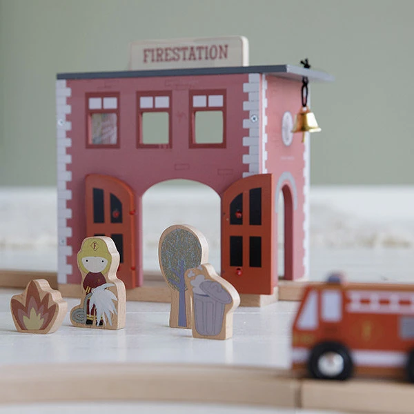 Deze brandweerkazerne is een mooie 12-delige houten speelset, die perfect gekoppeld kan worden aan de treinbaan XXL van Little Dutch. Het is prachtig houten speelgoed dat de fantasie bij kinderen aanspreekt. Is er ergens brand? Open snel de deuren en laat de brandweerwagen er door. Oh, nee! Er zit een poes vast in de boom! Gelukkig zijn de brandweerlieden er snel bij. Elk houten figuur is aan beide kanten voorzien van een gedetailleerde illustratie. Bijbehorende speelsets, zoals de houten voertuigen, een dierentuin en een garage, zijn verkrijgbaar voor nog meer speelplezier. Gemaakt van duurzaam en FSC-gecertificeerd hout. Bij deze set zijn geen rails stukken inbegrepen.