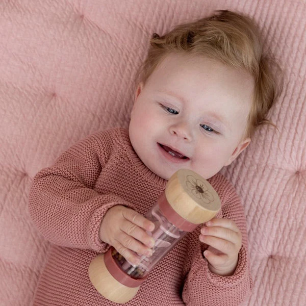 Regenrammelaar Flowers & Butterflies is super leuk baby speelgoed. De rammelaar stimuleert de zintuigelijke ontwikkeling en het muzikale talent van je baby. Schud en rammel! Draai de regenrammelaar om en luister naar de rustgevende druppelgeluidjes van de balletjes die van de ene naar de andere kant van de regenmaker bewegen. De balletjes, in 3 verschillende kleuren, vallen door kleine openingen in de buis en laten de propeller draaien, wat resulteert in een aangenaam geluid. De regenrammelaar is ontworpen voor kleine handjes en ligt lekker in de hand. De houten boven- en onderkant zijn versierd met een tekening van een zeilboot en zeemeeuw uit de Flowers & Butterflies collectie.