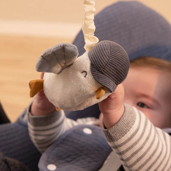 Deze schattige trilfiguur meeuw uit de Little Dutch Sailors Bay collectie wil graag vriendjes worden met je kindje. Als je aan hem trekt, trilt hij. Dat voelt gek, maar wel heel fijn! Deze trilfiguur is super leuk babyspeelgoed om mee te spelen. Dankzij de ring kan de bij makkelijk aan de box, autostoel of kinderwagen bevestigd worden.