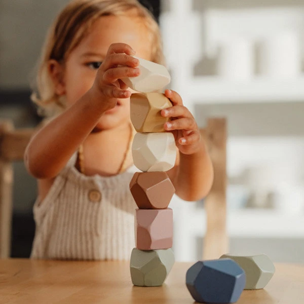 Met deze set van 10 houten stapelstenen in prachtige vintage kleuren kunnen kinderen stapelen, balanceren en bouwen. Begin maar met bouwen en kijk hoe indrukwekkend je torens en sculpturen zijn! De 10 houten stapelstenen hebben elk een eigen unieke vorm, kleur en gewicht. Zo is elk bouwwerk dat je maakt uniek. Deze speelse stenen in vintage kleuren spreken tot de verbeelding van je kind. Het is niet alleen leuk en uitdagend om met deze ongelijke stenen een toren te bouwen, het is ook nog eens spannend! Blijft de toren staan of valt hij om? Het spelen van dit stapel- en balanceerspel bevordert de hand-oogcoördinatie en probleemoplossende vaardigheden, terwijl je kindje zich urenlang vermaakt!