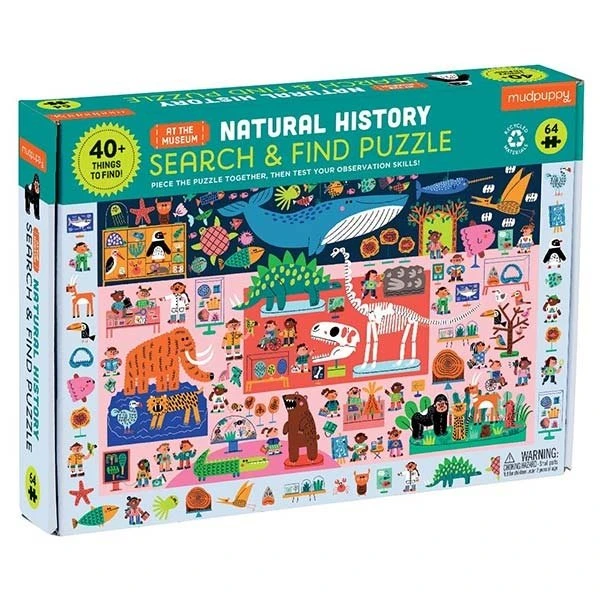 Zoekpuzzel Natural History Museum bevat 2 spellen in 1 om de behendigheid en het geheugen van uw kind te ontwikkelen! Een kartonnen puzzel van 64 stukjes met als thema Natural History Museum in een mooie doos om overal mee naartoe te nemen. En als de puzzel klaar is, kan het kind plezier beleven aan het vinden van de 40 afbeeldingen die in de puzzel verborgen zijn, die rondom rond staan aangegeven. Deze puzzel is een perfect cadeau voor kinderen vanaf 4 jaar en ouder.