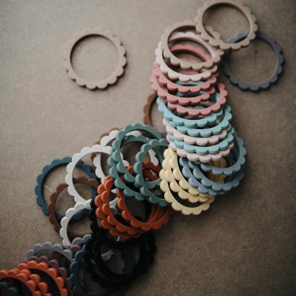 Kenmerken van deze Mushie Flower bijtring armband Cambridge blue: