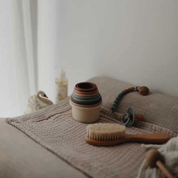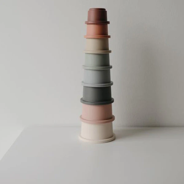 Deze stapeltoren bestaande uit 8 stapelbekers in verschillende mooie kleuren. De stapeltoren is super leuk babyspeelgoed en badspeelgoed. 3 stapelbekers hebben een gesloten bodem en 5 hebben vormen in de bodem waardoor water en zand kan stromen. Maak een prachtige stapeltoren van 30 cm hoog of zet de stapelbekers in elkaar. Ideaal voor de ontwikkeling van de fijne motoriek en hand-oog coördinatie.
