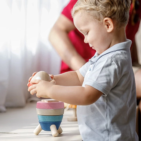Kenmerken van deze Plan Toys stapelraket Orchard +18M: