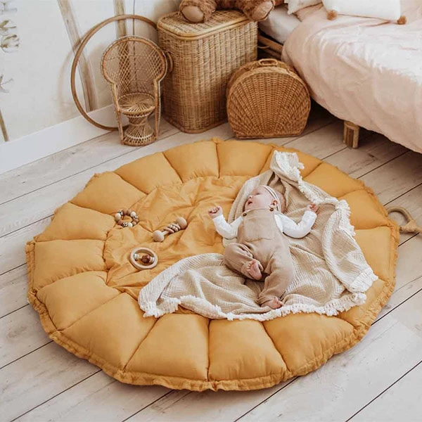 De Play and Go Bloom Mustard Organic is een unieke 3-in-1 speelmat, babynestje of opberger die meegroeit met je kind. Wanneer de bloemblaadjes van dit speelkleed omhoog staan, dan vormen ze een veilig ligbed voor je baby, met zachte bumpers ter bescherming. Staan de bloemblaadjes in bloei, dan gaat het speelkleed open en worden de stootranden neergelaten, waardoor er een grote, comfortabele speelmat voor baby’s en kinderen ontstaat. Pefect om te buikspannen, onder toezicht te spelen en op ontdekkingstoch te gaan. De Play & Go Bloom kan ook worden uitgestald in de kinderkamer of speelkamer, waar het favoriete speelgoed van jouw kind wordt bewaard en alles op één plek blijft. Deze speelmat is licht van gewicht en gemakkelijk te verplaatsen dankzij de afzonderlijke draagriemen. Ze biedt een vertrouwde ruimte voor jouw kleintje, waar je ook bent.