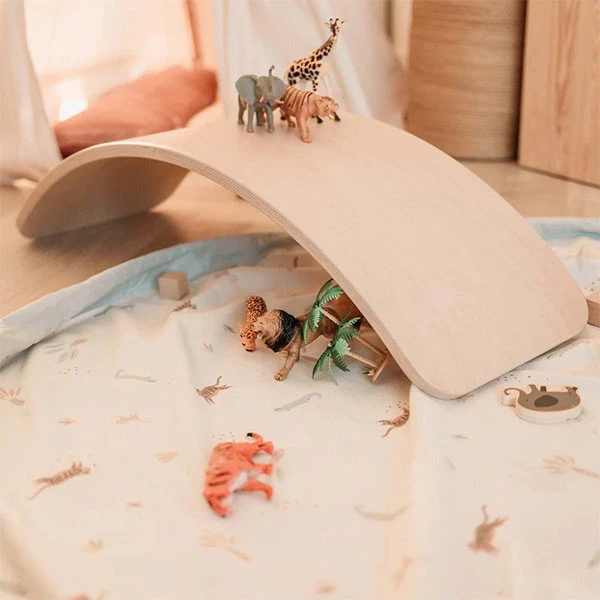 Speelmat en opbergzak Jungle is ideaal voor het beleven van leuke avonturen. Een praktische opbergzak en een leuke speelmat in één waardoor spelen, opruimen en speelgoed opbergen super leuk wordt! Trek je heel eenvoudig aan het koord van deze opbergzak, dan tover je dit speeltapijt in een handomdraai om tot een praktische opbergzak met handige ophaallus. Het ideale opbergsysteem.
