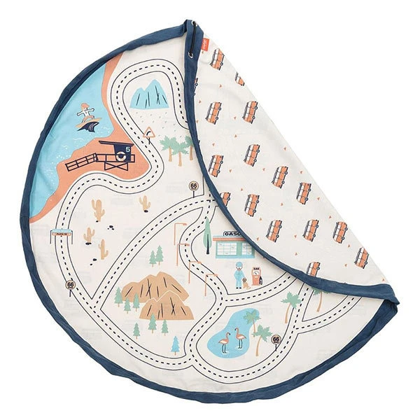 Speelmat en opbergzak LA roadmap is ideaal voor het beleven van leuke avonturen. Een praktische opbergzak en een leuke speelmat in één waardoor spelen, opruimen en speelgoed opbergen super leuk wordt! Trek je heel eenvoudig aan het koord van deze opbergzak, dan tover je dit speeltapijt in een handomdraai om tot een praktische opbergzak met handige ophaallus. Het ideale opbergsysteem.