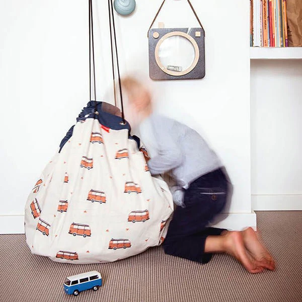 Een knap speelkleed en opbergzak in één, heel eenvoudig om dragen en weg te zetten voor jong en oud. Deze speelmat en opbergzak is dan ook de ideale oplossing voor vele moeders met jonge kinderen, want spelen, opruimen en opbergen wordt super eenvoudig en gaat razend snel! Neem deze handige opbergzak mee op vakantie, naar het strand of in de tuin. Altijd super handig! Met behulp van een deken of een slaapzak tover je deze übercoole speeltapijt zo om tot een knappe zitzak. Het knappe design zorgt ervoor dat deze opbergzak de decoratie is die absoluut niet mag ontbreken in de kinderkamer of jouw interieur. De speelmat en opbergzak is gemaakt uit stevig en duurzaam Oxford katoen. Je kan de opberzak eenvoudig wassen op een fijnwasprogramma met weinig wasmiddel en zonder bleek. Niet geschikt voor de droogkast en ook niet pal in de zon laten drogen.