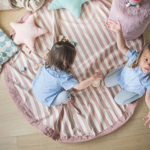 Speelmat en opbergzak Stripes Pink New is ideaal voor het beleven van leuke avonturen. Een praktische opbergzak en een leuke speelmat in één waardoor spelen, opruimen en speelgoed opbergen super leuk wordt! Trek je heel eenvoudig aan het koord van deze opbergzak, dan tover je dit speeltapijt in een handomdraai om tot een praktische opbergzak met handige ophaallus. Het ideale opbergsysteem.