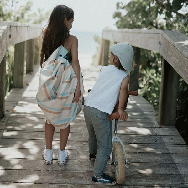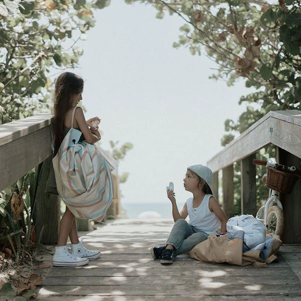 Leuk weetje: De opbergzak heeft in het midden een gaatje om zo al het zand na een bezoekje aan het strand eruit te laten lopen.