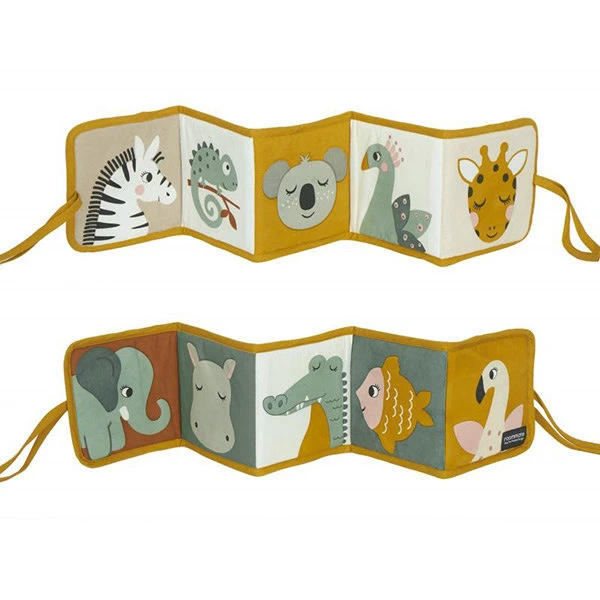 Dit stoffen babyboekje Jungle Life is niet enkel een leuk knisperboekje om te bekijken en te ontdekken. Het is tevens ook het ideale babyspeelgoed voor je baby om mee te spelen in de box, op het speelkleed, onderweg in de auto of de kinderwagen. Het babyboekje is prachtig geïllustreerd en komt in verschillende materialen en structuren. Dit stoffen boekje is geweldig leuk om de nieuwsgierigheid van je baby te prikkelen. Het is gemaakt van biologisch katoen en afgewerkt met knetterende vullingen, wat zorgt voor veel zintuiglijke ervaringen.
