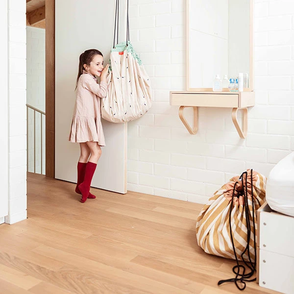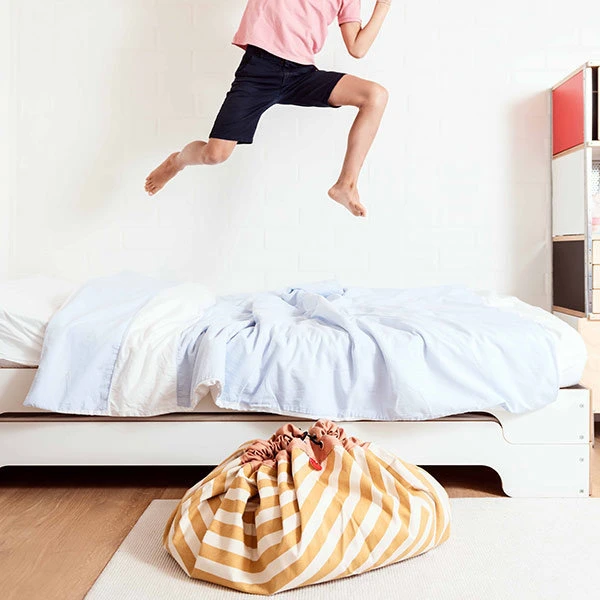 Deze dubbelzijdige speelmat en opbergzak met Stripes Mustard print is ideaal voor het beleven van leuke avonturen. Een praktische opbergzak en een leuke speelmat in één waardoor spelen, opruimen en speelgoed opbergen super leuk wordt! Trek je heel eenvoudig aan het koord van deze opbergzak, dan tover je dit speeltapijt in een handomdraai om tot een praktische opbergzak met handige ophaallus. Het ideale opbergsysteem. Een knap speelkleed en opbergzak in één, heel eenvoudig om dragen en weg te zetten voor jong en oud. Deze speelmat en opbergzak is dan ook de ideale oplossing voor vele moeders met jonge kinderen, want spelen, opruimen en opbergen wordt super eenvoudig en gaat razend snel! Neem deze handige opbergzak mee op vakantie, naar het strand of in de tuin. Altijd super handig! Met behulp van een deken of een slaapzak tover je deze übercoole speeltapijt zo om tot een knappe zitzak. Het knappe design zorgt ervoor dat deze opbergzak de decoratie is die absoluut niet mag ontbreken in de kinderkamer of jouw interieur. De speelmat en opbergzak is gemaakt uit stevig en duurzaam Oxford katoen. Je kan de opberzak eenvoudig wassen op een fijnwasprogramma met weinig wasmiddel en zonder bleek. Niet geschikt voor de droogkast en ook niet pal in de zon laten drogen.
