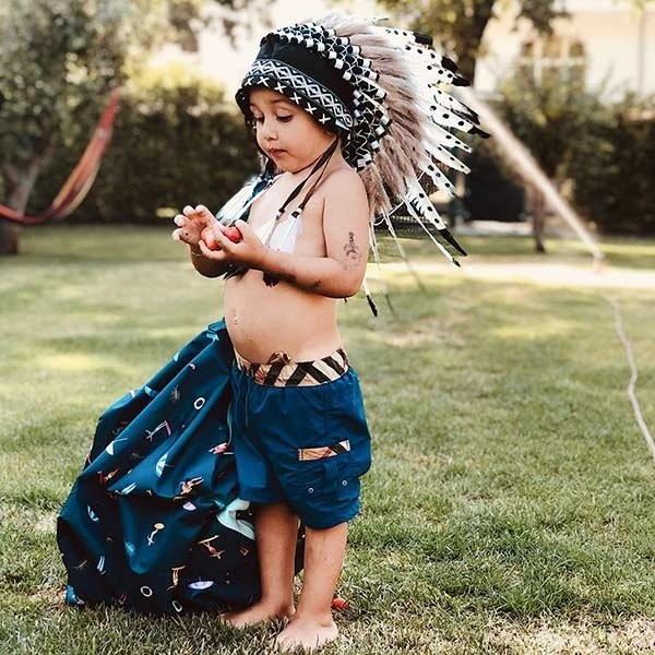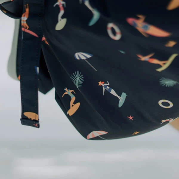 Deze outdoor opbergzak en speelmat in 1, met leuke surf print is de unieke, waterdichte oplossing om al je spullen gemakkelijk mee te nemen voor een dagje strand, park of picknick. Leg de opbergzak open en tover hem om tot een leuke speelmat om op te zitten of te spelen. Is de grond nat, dan blijf jij zeker droog. Tijd om te gaan? Trek aan het touw en alls is netjes opgeborgen in een praktische opbergzak. De verstelbare schouderriem maakt het makkelijk om de opbergzak te dragen. De speelmat heeft een diameter van wel 140 cm en is gemaakt van hoogwaardig zacht PU-gelamineerde polykatoen.