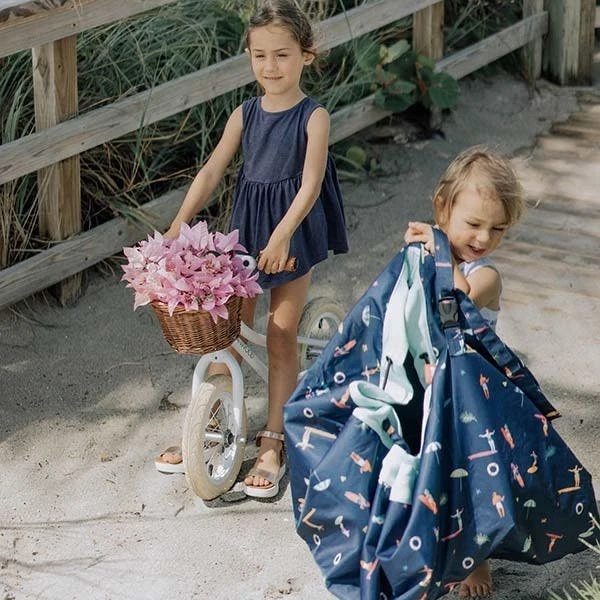 Leuk weetje: De opbergzak heeft in het midden een gaatje om zo al het zand na een bezoekje aan het strand eruit te laten lopen.
