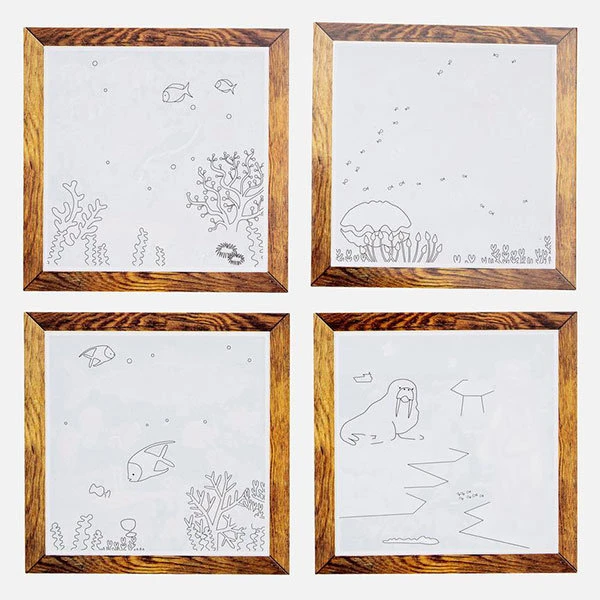 - Inhoud: 4 kleurplaten + 1 magisch penseel