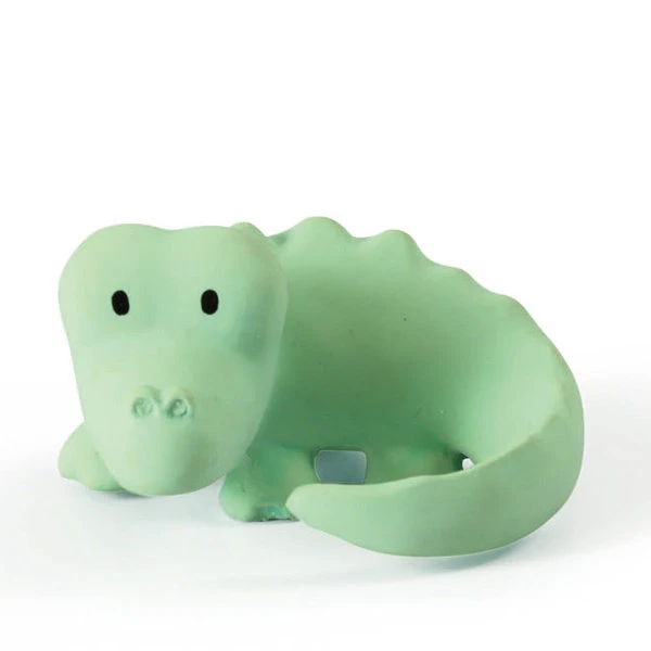 Dit badspeeltje, een schattige krokodil met belletje in natuurlijk latex is ideaal om mee te spelen en in te bijten. Het badspeelgoed heeft geen gaatje, waardoor bacteriën en schimmels geen kans hebben zich te nestelen. Het speeltje ziet er leuk uit, is zacht en flexibel en past perfect in kleine handjes.