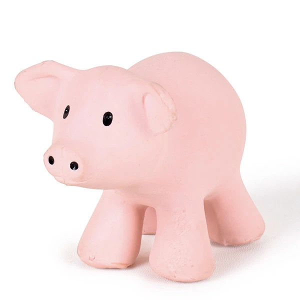 Dit badspeeltje, een schattig varken met belletje in natuurlijk latex is ideaal om mee te spelen en in te bijten. Het badspeelgoed heeft geen gaatje, waardoor bacteriën en schimmels geen kans hebben zich te nestelen. Het speeltje ziet er leuk uit, is zacht en flexibel en past perfect in kleine handjes.