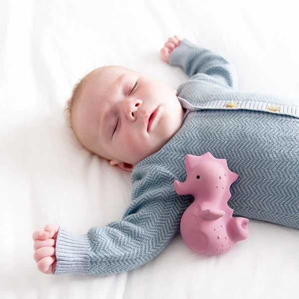 Dit badspeeltje, een schattig zeepaardje met belletjein natuurlijk latex is ideaal om mee te spelen en in te bijten. Het badspeelgoed heeft geen gaatje, waardoor bacteriën en schimmels geen kans hebben zich te nestelen. Het speeltje ziet er leuk uit, is zacht en flexibel en past perfect in kleine handjes.