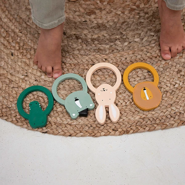 Bijtring Mrs. Rabbit is super leuk babyspeelgoed gemaakt uit 100% natuurlijk zacht rubber en dus perfect veilig voor je baby. De bijtring verlicht de pijn bij doorkomende tandjes, maar is bovendien ook een leuk grijpspeeltje heel makkelijk te grijpen door kleine handjes.