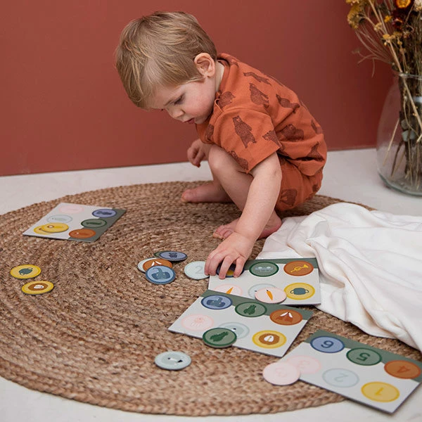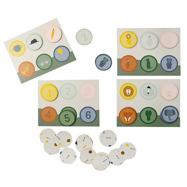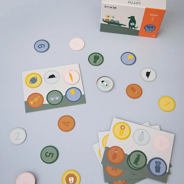 Prachtig Lotto spel in een leuk Trixie dieren design. Lotto is een super leuk spel dat gespeeld wordt met 2 tot 4 spelers en het geheugen en de concentratie van kinderen oefent terwijl ze nieuwe voorwerpen, getallen en dieren leren benoemen. Trek een kaart en kijk of ze overeenkomt met de afbeeldingen op je lottokaart. De winnaar van deze Lotto is de speler die als eerste al zijn of haar symbolen gevonden heeft.