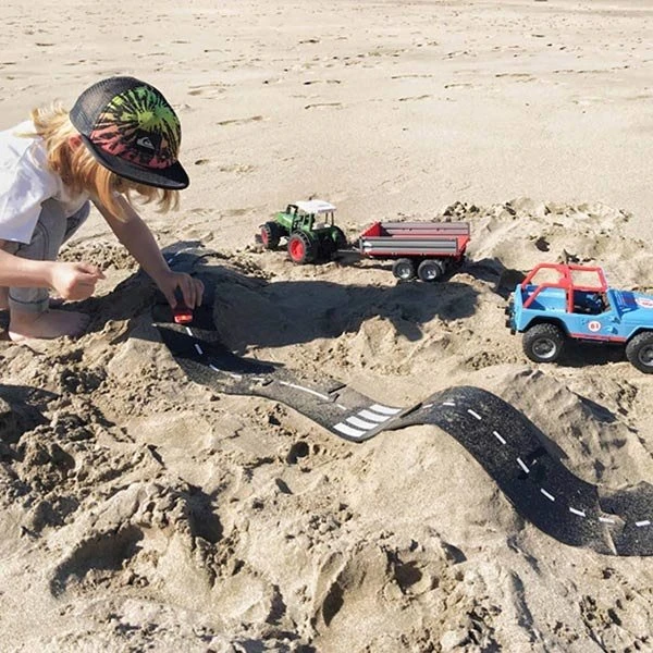 Maak met deze 16 delige autobaan een autoweg voor al je speelgoedauto’s en andere favoriete speelgoed. Deze flexibele autobaan is fantastisch speelgoed dat de verbeeldingswereld van kinderen stimuleert. De autobaan bestaat uit rubberen puzzelstukken die gemakkelijk in elkaar passen en op alle soorten ondergrond gebruikt kunnen worden. Deze autobaan is te verkrijgen in verschillende sets die onderling perfect te combineren zijn.